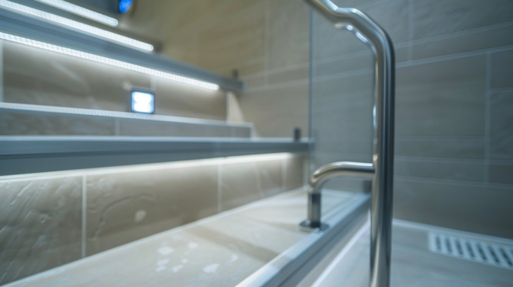 - 미끄럼 방지 타일, 안전손잡이, 넓은 복도, 낮은 싱크대, 미닫이 욕실문 등